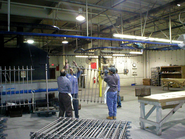 Since this project had to be true to the original 1862 fence, no fasteners, pins or welds could be visible. The new panels were to be of welded construction, and this posed one of the project’s biggest challenges – developing the manufacturing methods to cast around the weldment in a cost-effective, productive manner. To ensure that the mold would fit snug at each union for dead-on castings, the first step was to create precise assembly fixtures for accuracy. The weldments needed to be ±.15 inches to guarantee that the castings would be correct. The weld fixture held the steel posts in place with pneumatic clamps and enabled two workers to weld at the same time.