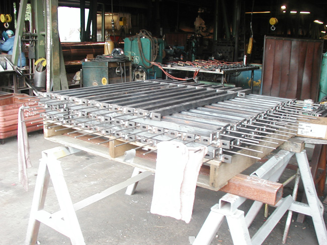Since this project had to be true to the original 1862 fence, no fasteners, pins or welds could be visible. The new panels were to be of welded construction, and this posed one of the project’s biggest challenges – developing the manufacturing methods to cast around the weldment in a cost-effective, productive manner. To ensure that the mold would fit snug at each union for dead-on castings, the first step was to create precise assembly fixtures for accuracy. The weldments needed to be ±.15 inches to guarantee that the castings would be correct. The weld fixture held the steel posts in place with pneumatic clamps and enabled two workers to weld at the same time.
