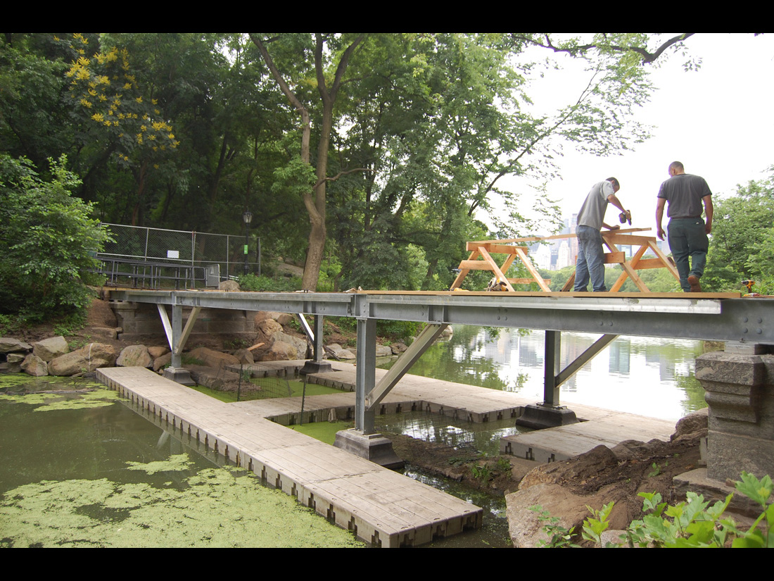 The Central Park Conservancy made the decision to replace an existing utilitarian footbridge with a replication of the Oak Bridge, which was first built in 1860 at the same site. The original design of the 75-feet-long, 13-feet-wide bridge would be approximated using more modern, and durable, materials.