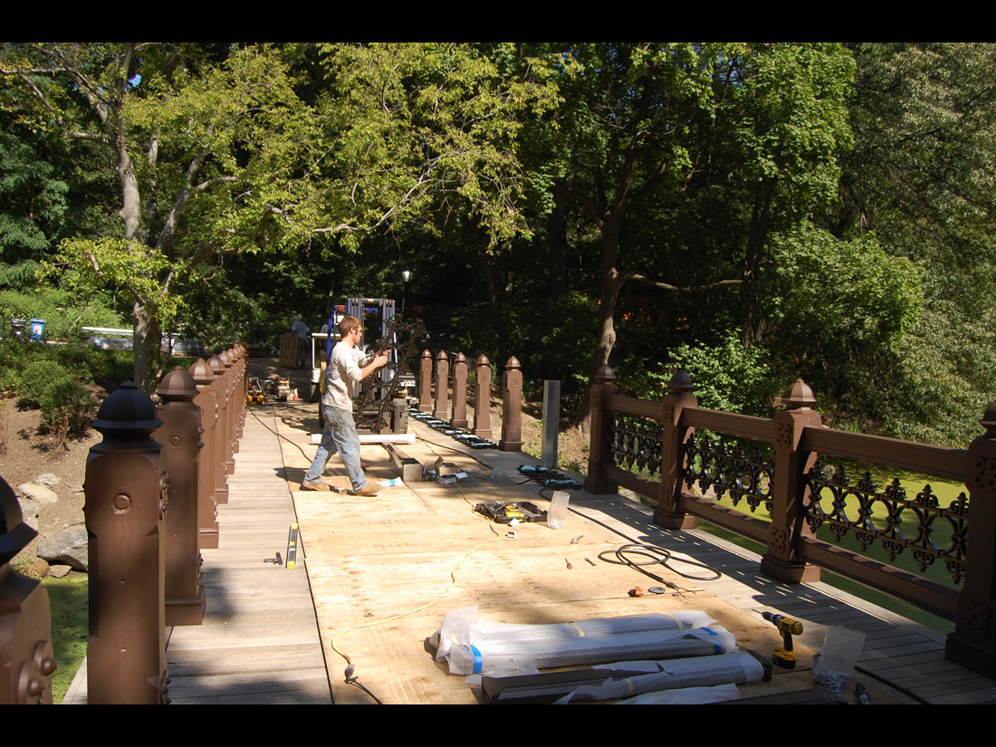 The Central Park Conservancy made the decision to replace an existing utilitarian footbridge with a replication of the Oak Bridge, which was first built in 1860 at the same site. The original design of the 75-feet-long, 13-feet-wide bridge would be approximated using more modern, and durable, materials.